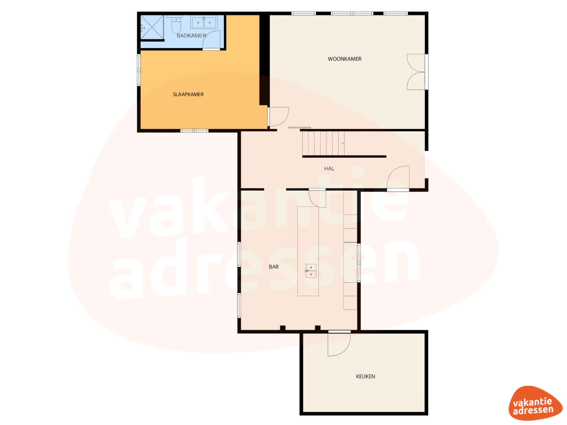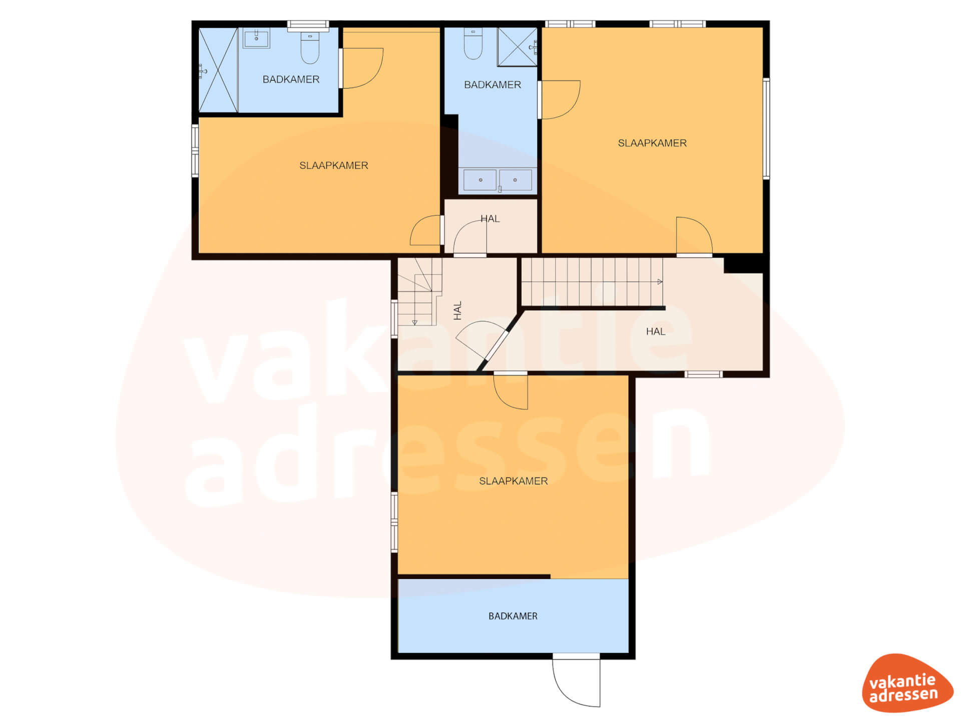 Slaapkamer 2: 1x 2-persoonsboxspringbed (180x210) + 2x 1-persoonsbed (90x210) + regendouche, toilet en wastafel