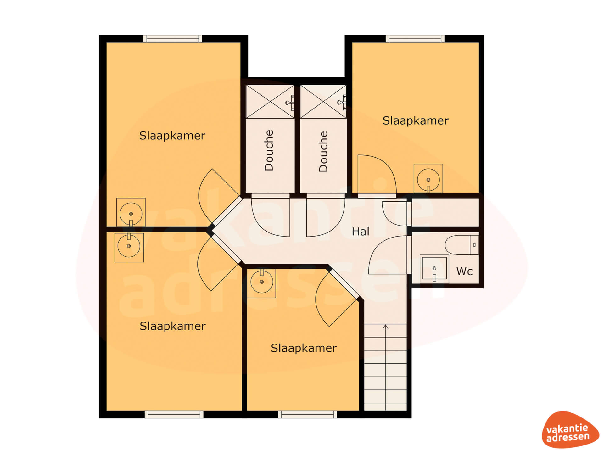 Slaapkamer 4: 3x 1-persoons bed + wastafel