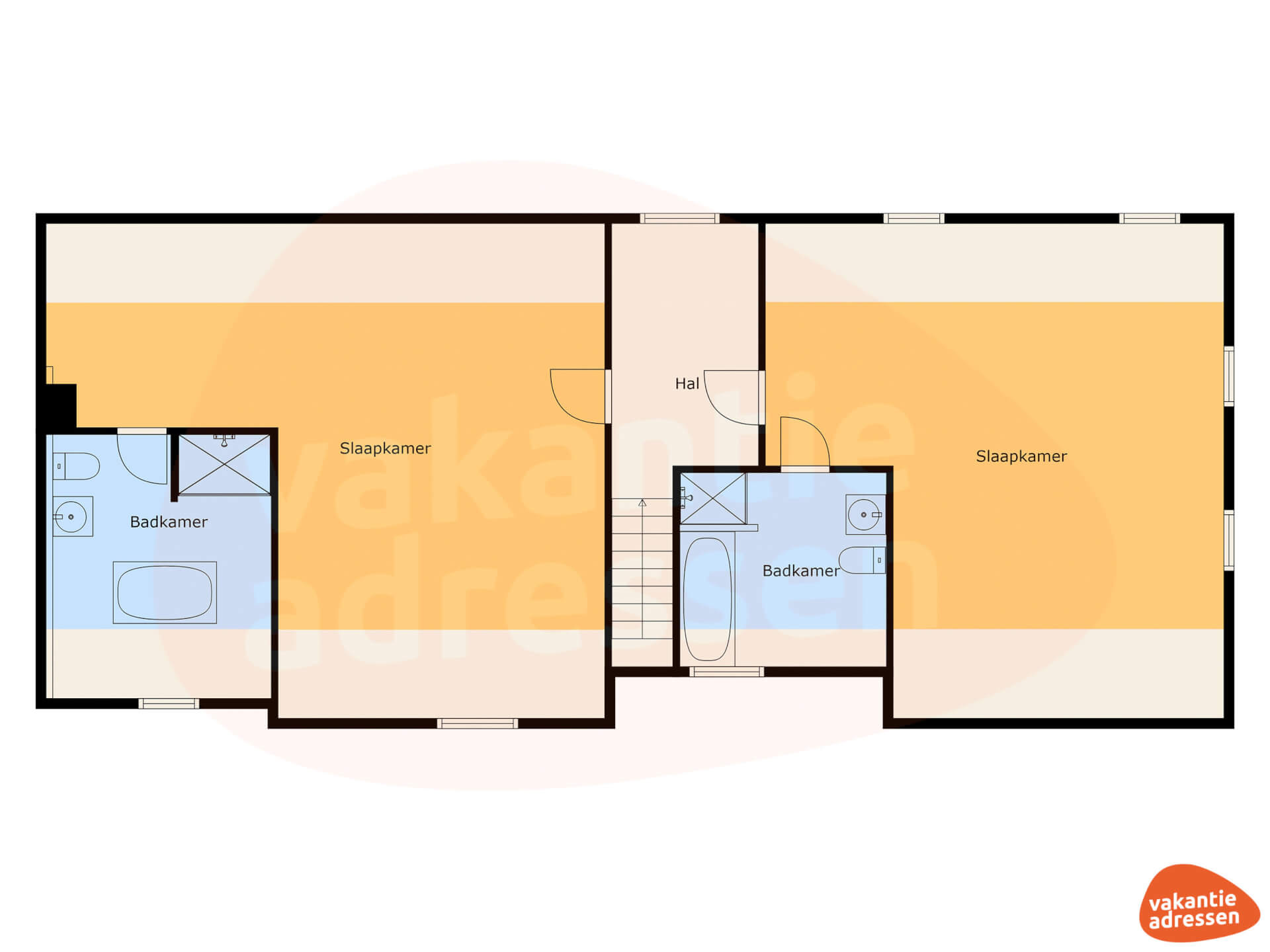 Slaapkamer 3: 1x 2-persoonsbed + 2x 1-persoonsbed + ligbad, douche, toilet en wastafel