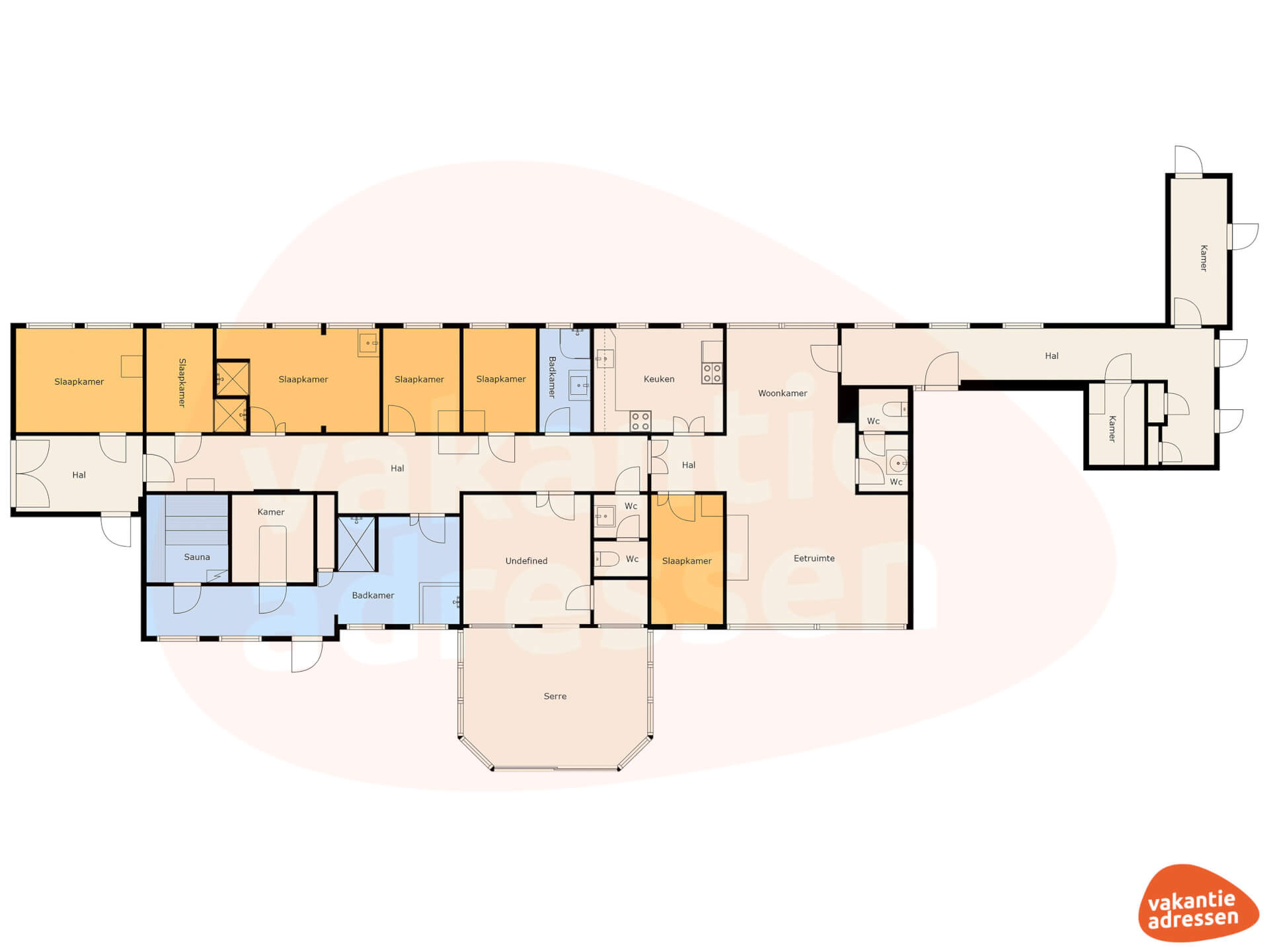 Het wellness vakantieadres is van alle luxe en comfort voorzien voor een heerlijk weekend weg met familie of vrienden. Zo beschik je over een eetkamer met flatscreen TV, waar je met z’n allen kunt genieten van een eigengemaakte maaltijd of eventuele catering of lekker kunt ‘chillen’ bij de tv of een spelletje doen. Een gezellige ruime zitkamer, grenzend aan de serre, met flat screen TV. Een keuken die van vele gemakken is voorzien zoals vaatwasser, 2 ovens, magnetron, 2 koelkasten, vriezer en een ruim fornuis en nog een kleiner fornuis. En niet te vergeten de serre, waar het altijd goed vertoeven is. Via de schuifdeur in de serre kom je op het terras met tuinmeubilair en de whirlpool waarvan je tijdens je verblijf heerlijk kunt genieten. De tuin is volledig prive/beschut en omheind. Ook heb je bij de eetkamer nog een schuifpui waar nog een extra stukje terras met meubilair is.