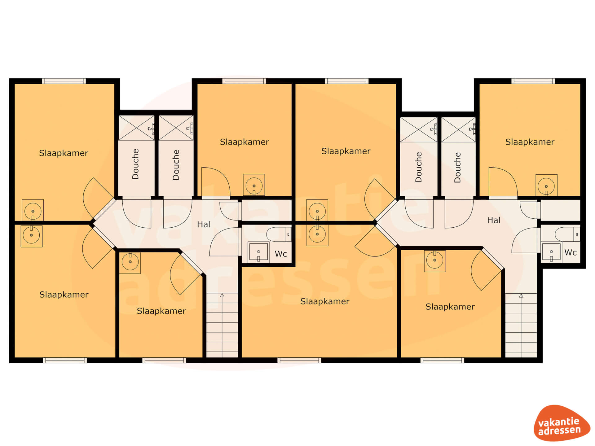 Slaapkamer 8: 2x 1-persoons bed + wastafel