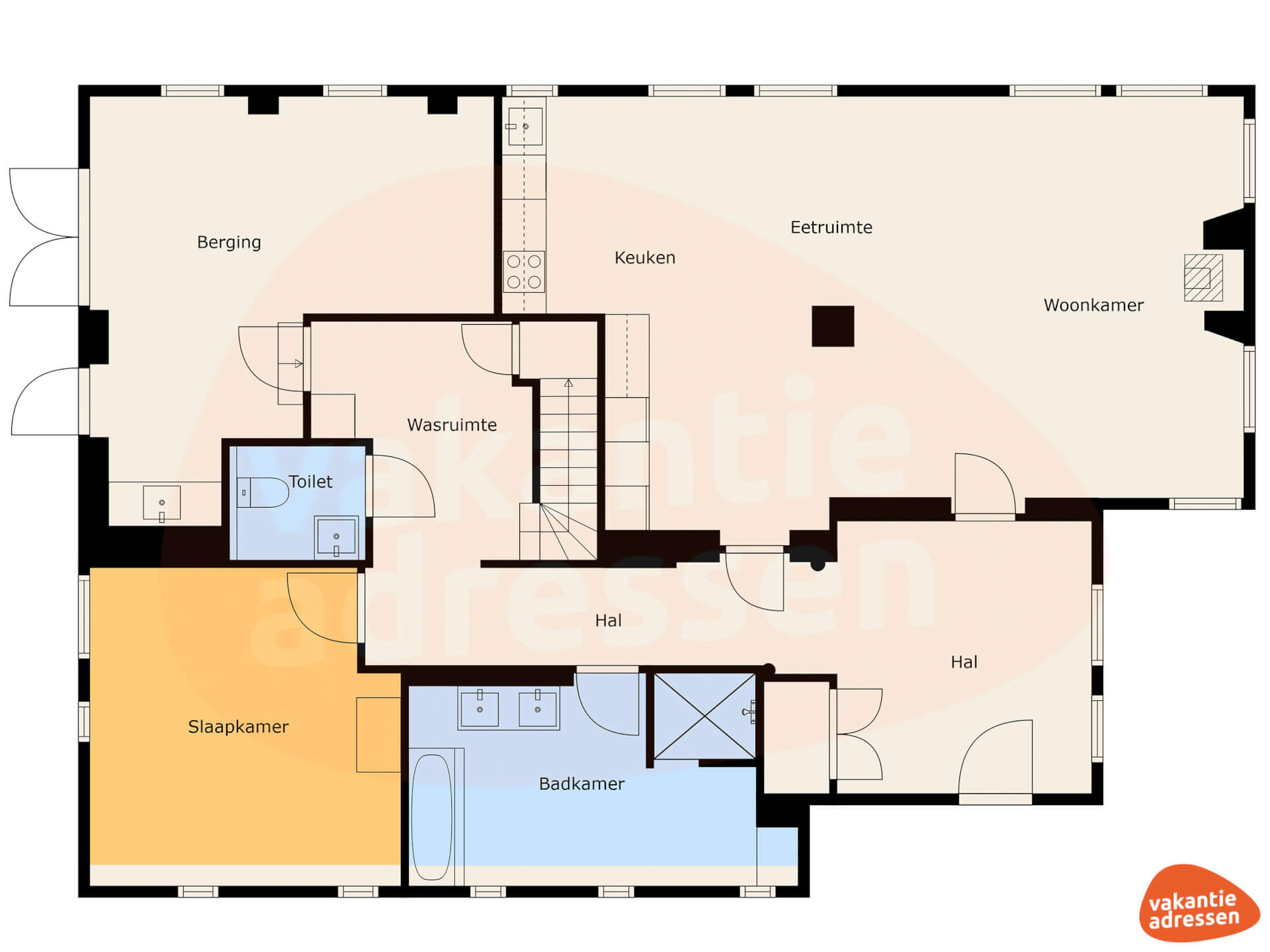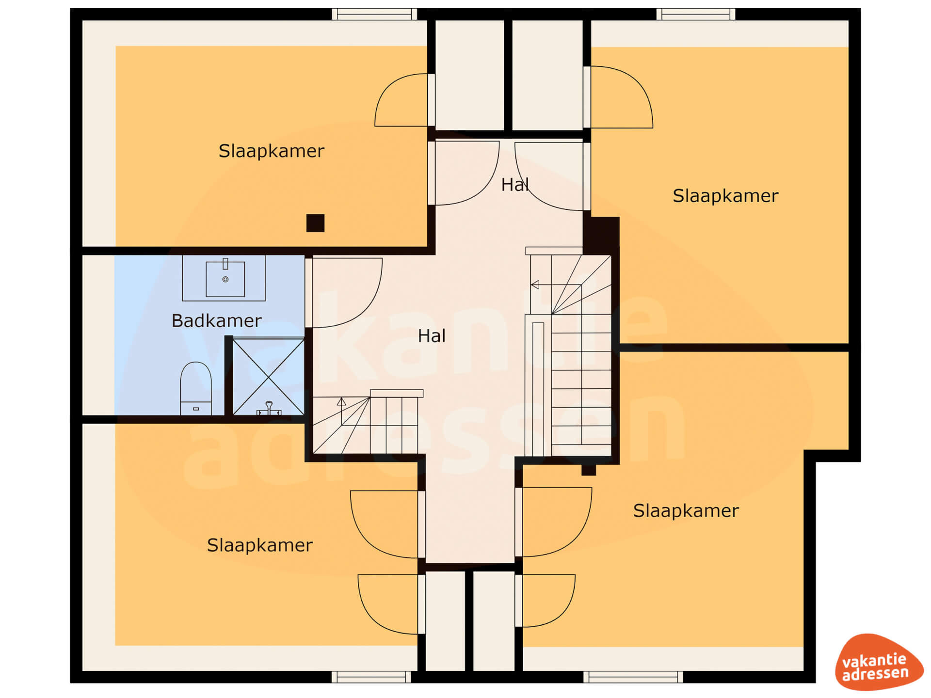 De 6 slaapkamers zijn verdeeld over 3 verdiepingen. Op de begane grond bevindt zich de eerste slaapkamer en de eerste van de twee luxe badkamers. Op de eerste verdieping vind je 4 slaapkamers en de tweede moderne badkamer. In de nok is de zesde slaapkamer gesitueerd. Elke slaapkamer is erg sfeervol en voorzien van twee extra lange boxspringbedden, aan slaapcomfort zal het je niet ontbreken. De badkamers zijn erg ruim van opzet en voorzien van alle luxe, zo heeft de badkamer beneden als kers op de taart een groot ligbad, om even heerlijk te ontspannen.