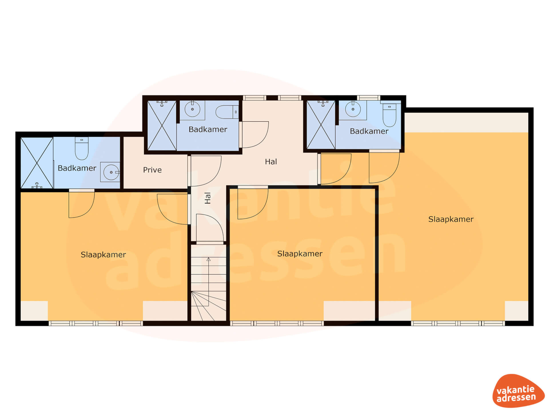 • Alle slaapkamers zijn voorzien van eigen douche, toilet en wastafel
