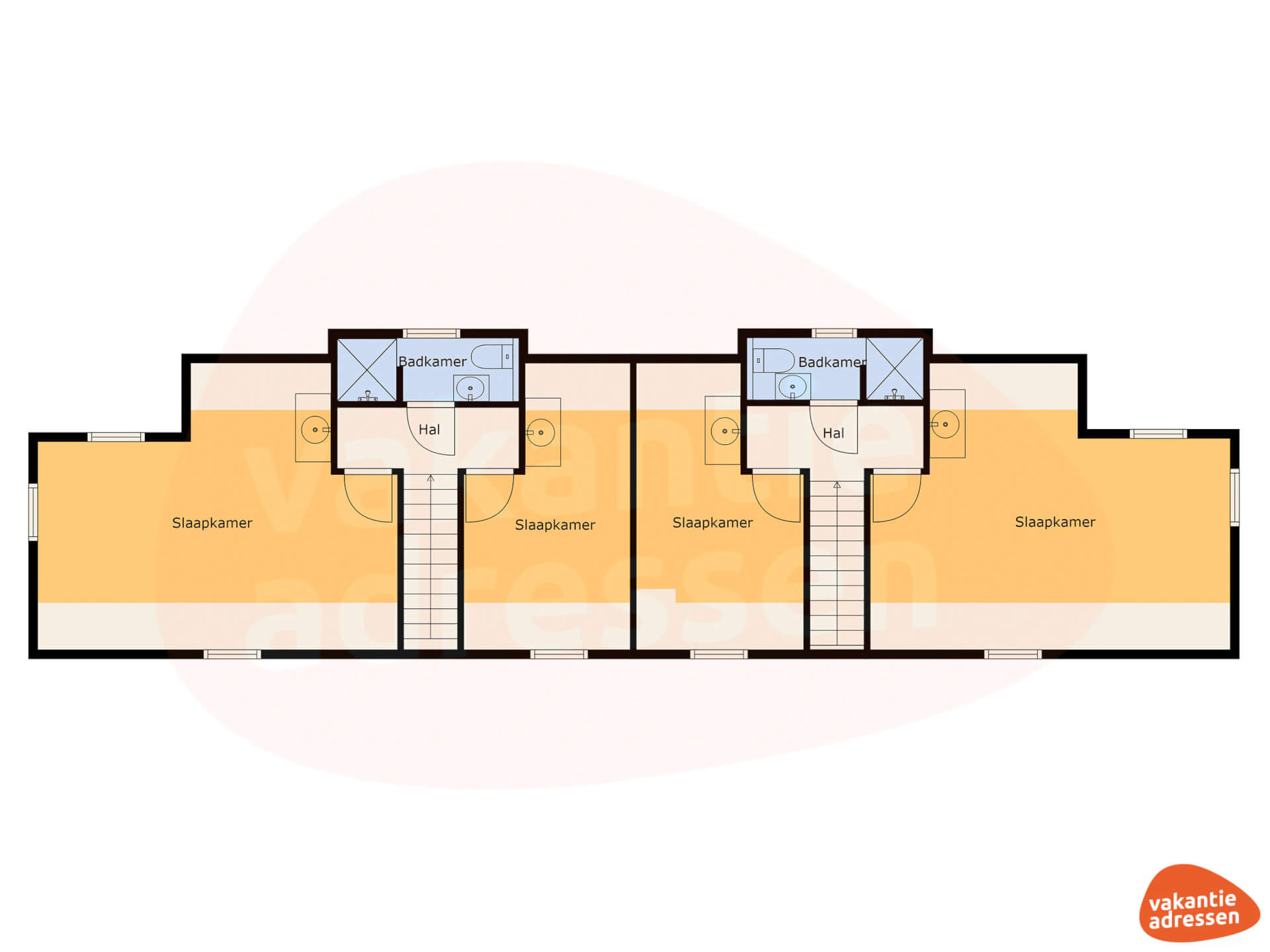 Slaapkamer 1: 2x 1-persoons bed (90x210 cm) + douche en wastafel