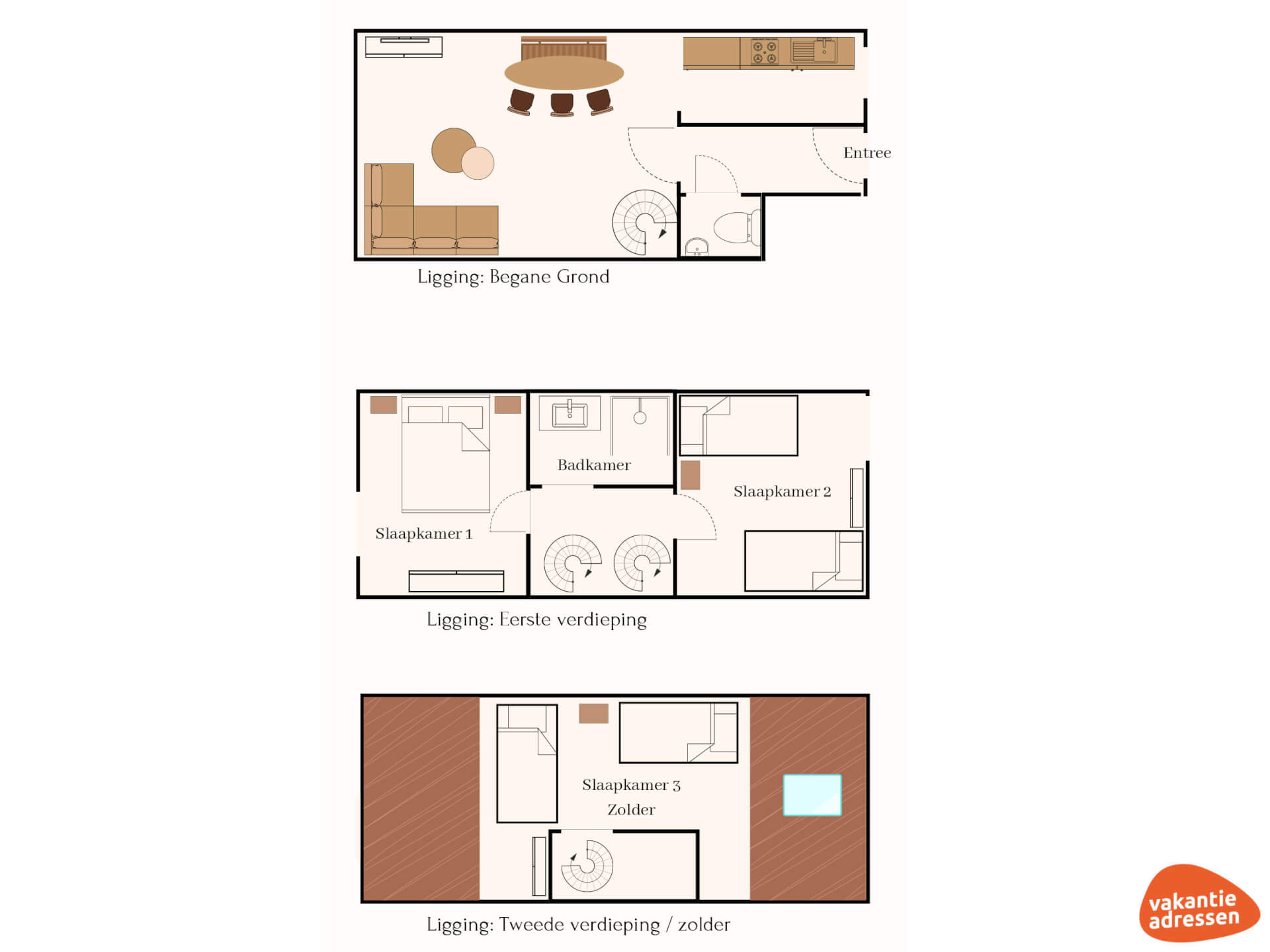 Slaapkamer 4: 3x 1-persoonsbed (90x200)