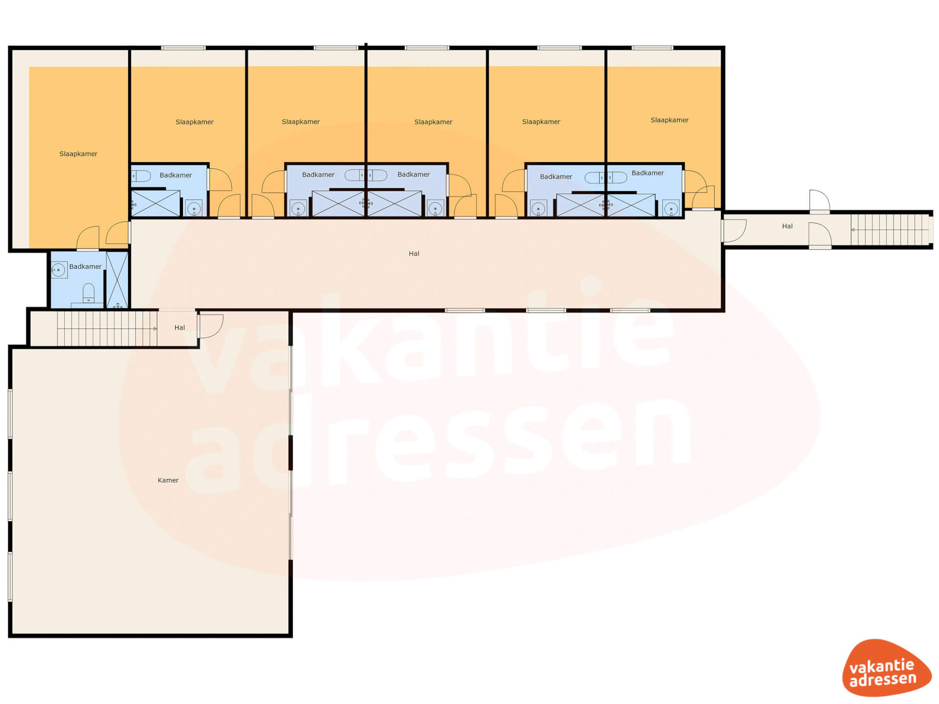 Slaapkamer 8: 5x 1-persoonsbed + douche en wastafel