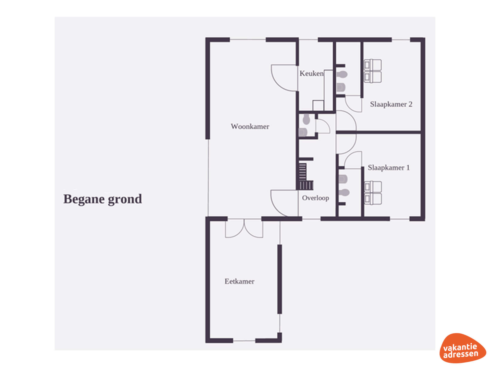 Slaapkamer 1: 2x 1-persoonsbed (aangepast sanitair)