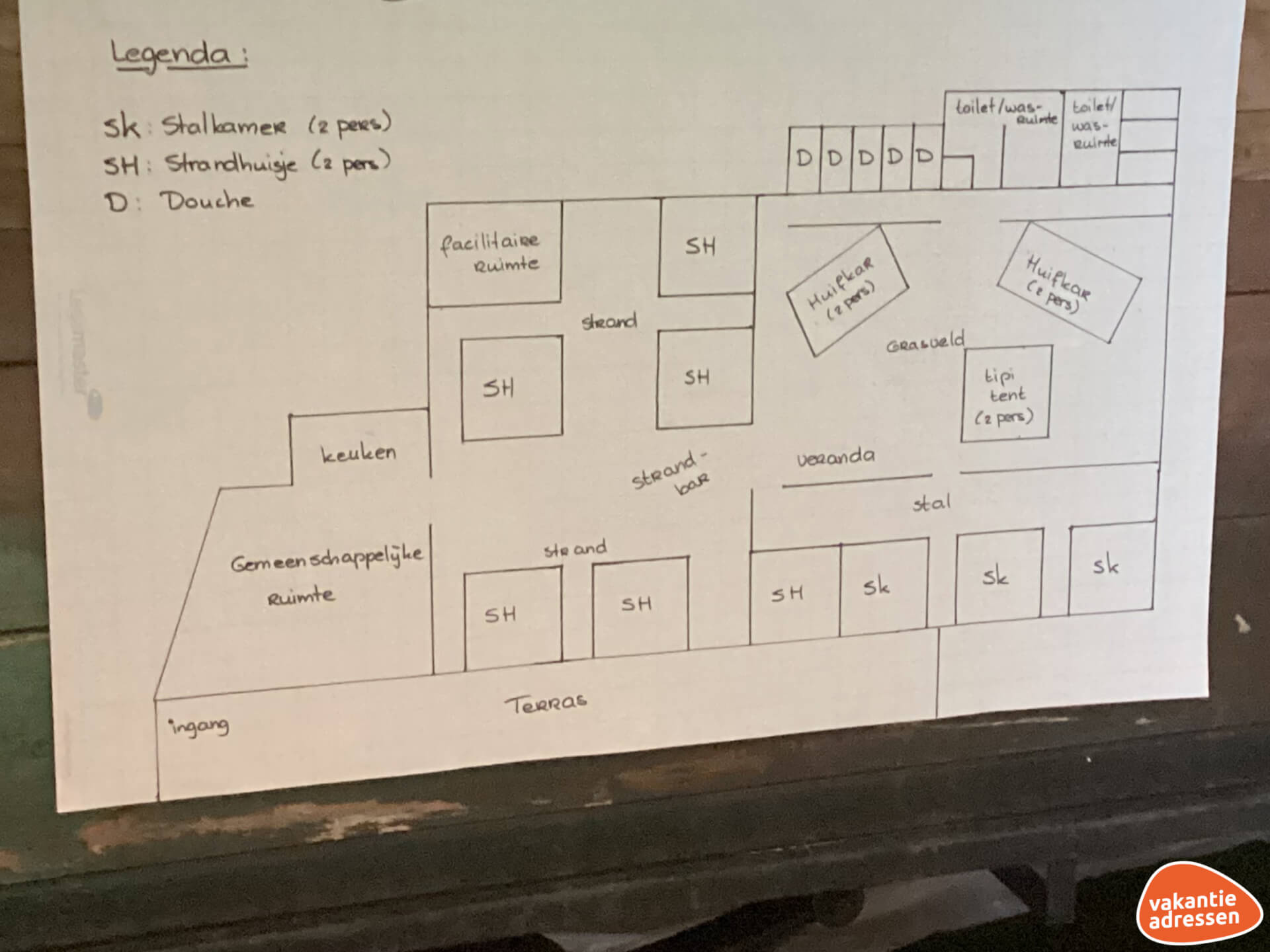 Er zijn 12 verschillende 2 persoons themakamers, met comfortabele boxspringbedden die bij aankomst al voor je zijn opgemaakt. Een strandhuisje, Huifkar, Tipitent of Stalkamer, kies je favoriete kamer voor de nacht. Er zijn voldoende toiletten en wastafels en tevens 5 aparte ruime douches, zodat er genoeg privacy is voor iedereen. Het verblijf is inclusief handdoeken, badjassen en bedlinnen, wat zorgt voor een zorgeloos en luxe gevoel.