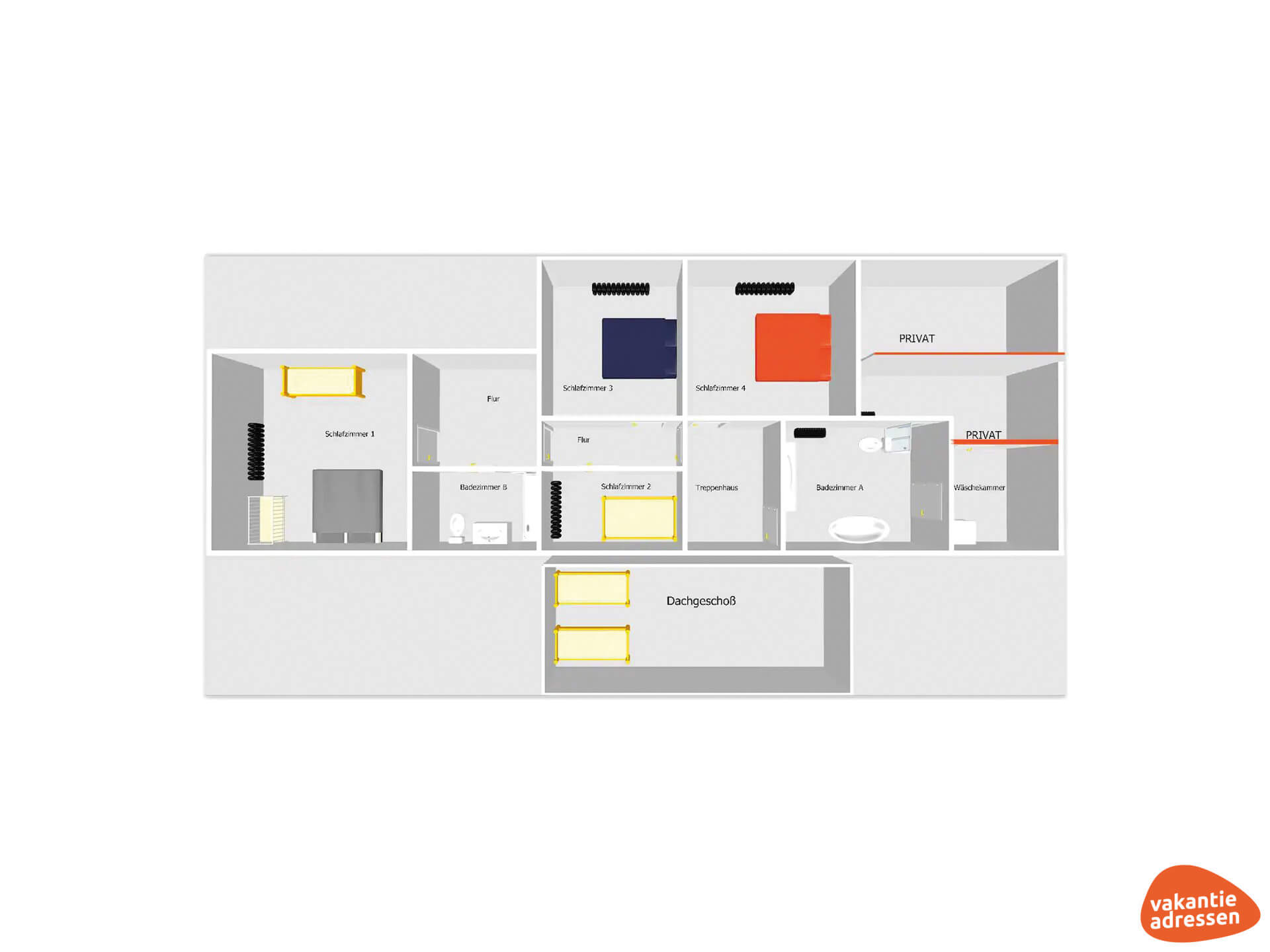 Slaapkamer 1: 1x 2-persoonsbed + 1x 1-persoonsbed