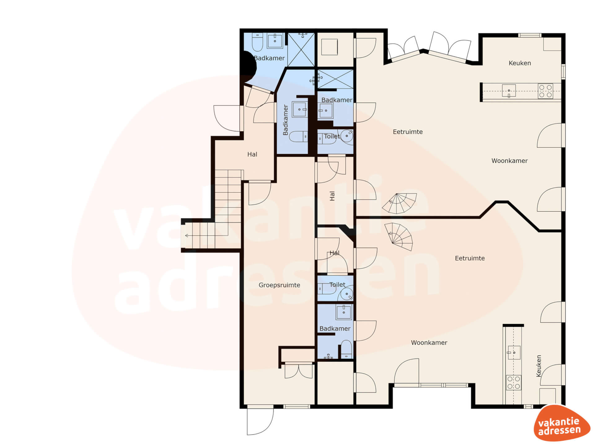 Bijzonderheden: Dit vakantieadres is zowel voor kleine als grotere groepen geschikt en staat daarom twee keer op ons platform. Het betreft hetzelfde vakantieadres met dezelfde foto's & prijzen en wordt dus ook altijd aan één groep tegelijk verhuurd.