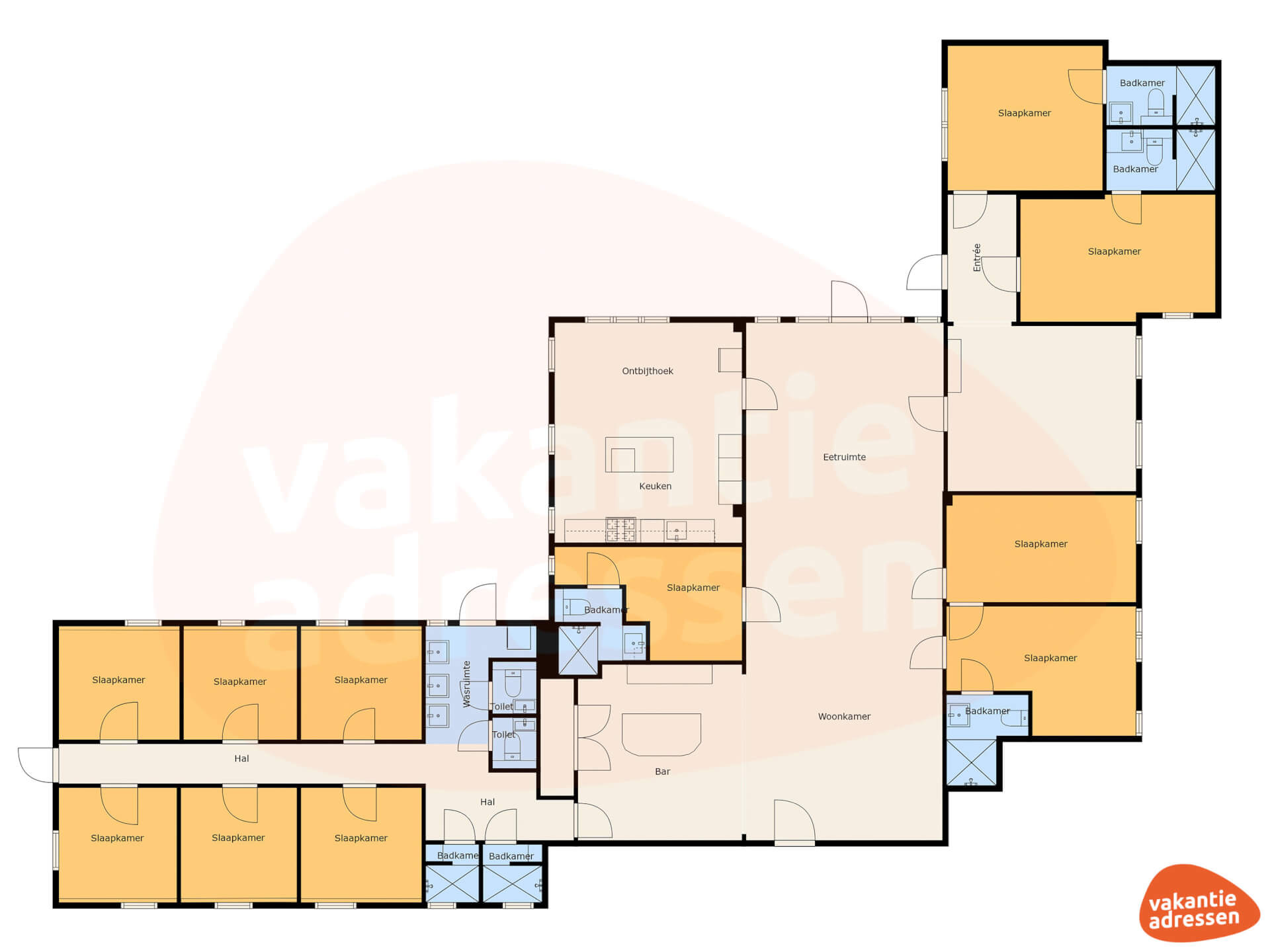 Bijzonderheden: Dit vakantieadres is zowel voor kleine als grotere groepen geschikt en staat daarom twee keer op ons platform. Het betreft hetzelfde vakantieadres met dezelfde foto's & prijzen en wordt dus ook altijd aan één groep tegelijk verhuurd.