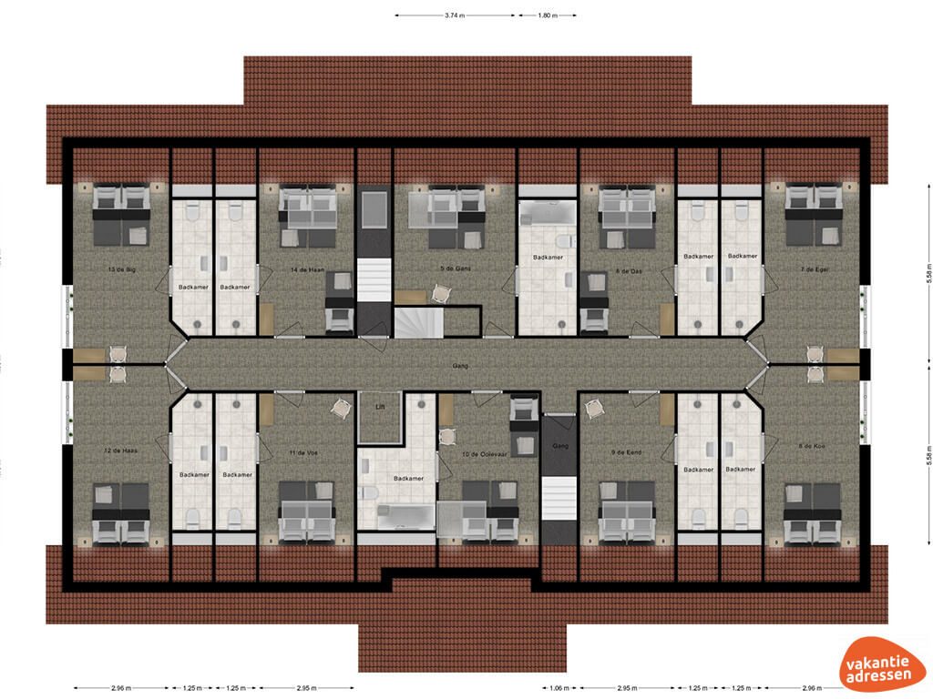 - Alle slaapkamers zijn voorzien van eigen douche, toilet en wastafel