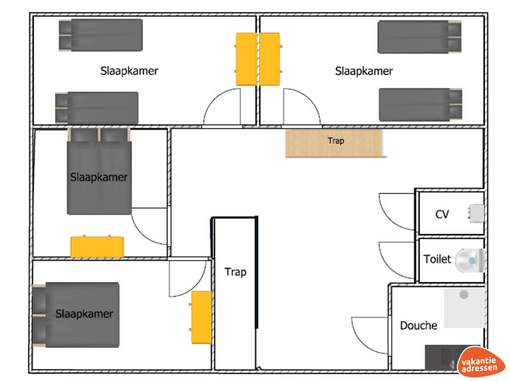Het vakantiehuis beschikt over zeven slaapkamers, verdeeld over drie verdiepingen. Op de begane grond is een tweepersoonskamer met een authentieke potkachel, die een geweldige sfeer geeft aan deze ruimte. Er is een badkamer ensuite met inloopdouche en dubbele wastafel op een prachtig houten meubel. Hier vind je ook een wasmachine en een droger. Op de eerste verdieping zijn vier slaapkamers onder het schuine dak, met elk 2x 1 persoonsbedden. De ruime slaapkamers zijn smaakvol ingericht en bieden je een comfortabel verblijf en prachtig uitzicht over het polderlandschap en de nabij gelegen boerderij. Ook is hier een badkamer met douche, wastafel en een seperate toiletruimte gesitueerd. Op de tweede verdieping vind je twee nostalgische bedstedes waar elk twee personen kunnen slapen, alsof je in een poppenhuis slaapt. Een kinderstoel, campingbedje met extra matras en een box zijn op aanvraag aanwezig.