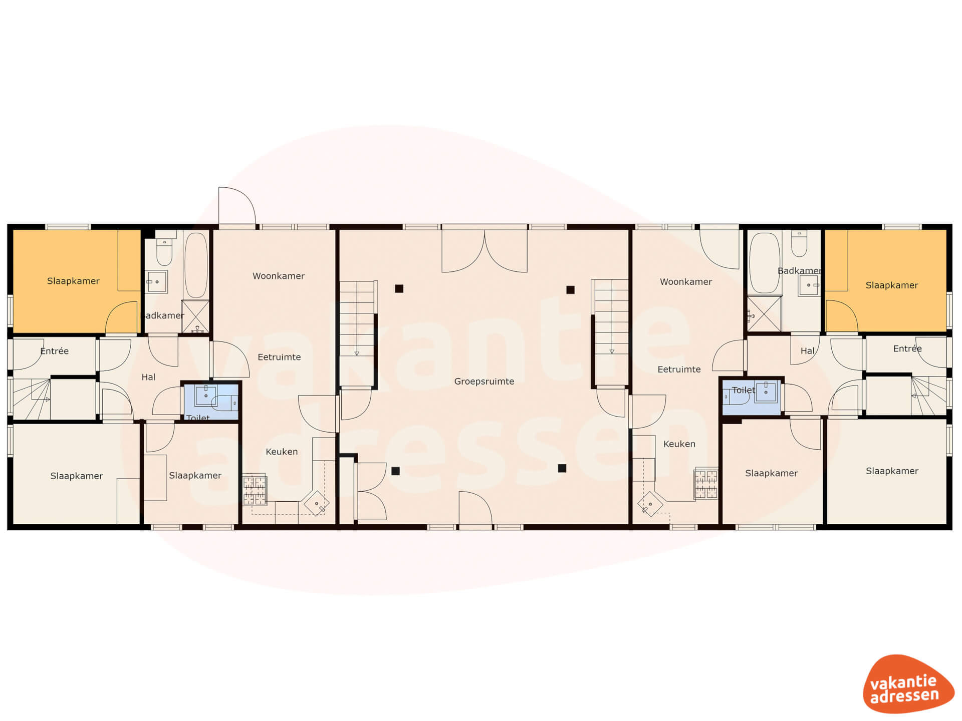 Bijzonderheden: In het gebouw zijn 4 appartementen gelegen. Als groep kun je de accommodatie huren met 3 of 4 appartementen. Deze vermelding heeft betrekking op het huren van 3 appartementen. Wil je 4 appartementen huren, bekijk dan deze vermelding. Als je 3 appartementen huurt, staat het 4e appartement leeg en zal dit appartement niet aan een ander gezin worden verhuurd. Hierdoor heb je altijd exclusiviteit met jouw gezelschap.