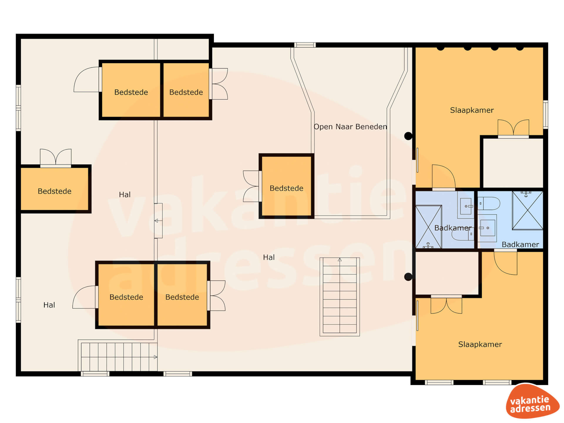 Slaapkamer 4: 6x 2-persoons bedsteden (12 personen) + 4x 2-persoons bedbanken (8 personen)